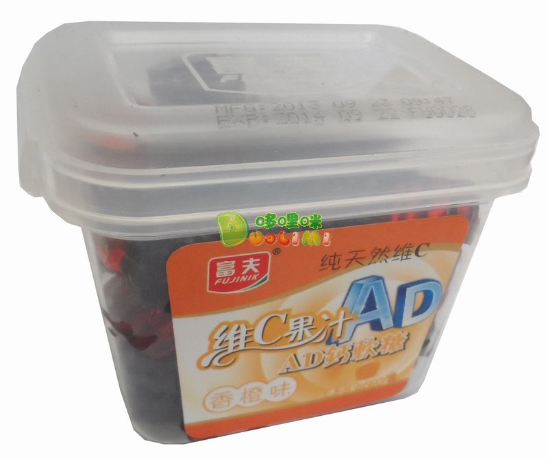 品 名:富夫維C果汁AD鈣軟糖(香橙味)230克 進(jìn)口食品批發(fā)