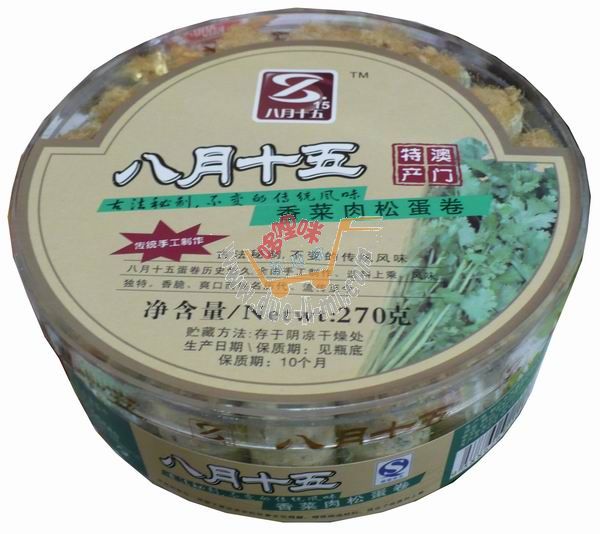 品 名:八月十五—肉松蛋卷(香菜)/270克 進(jìn)口食品批發(fā)
