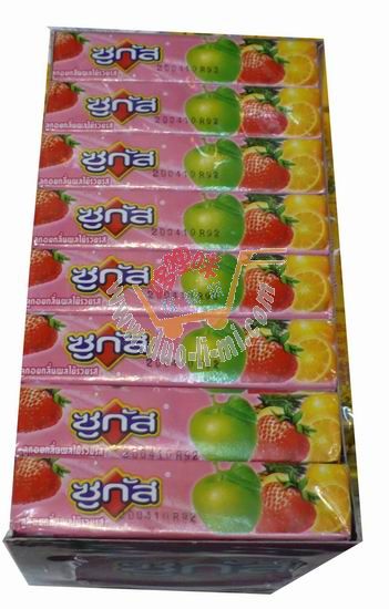 品 名:泰國sugus瑞士糖(士多啤梨蘋果橙味)(泰文版)/(30克X24條) 進(jìn)口食品批發(fā)