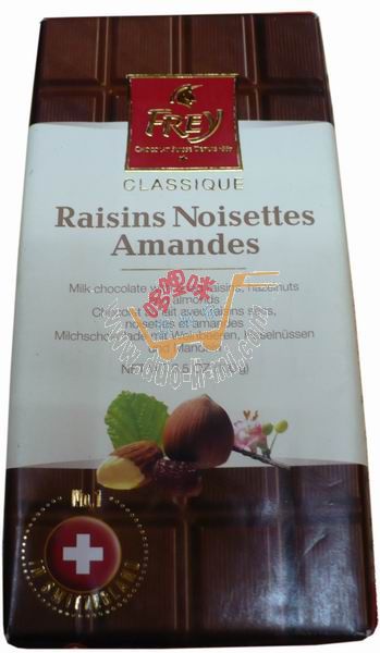 品 名:飛瑞爾—葡萄干榛子杏仁牛奶巧克力/100g 進(jìn)口食品批發(fā)