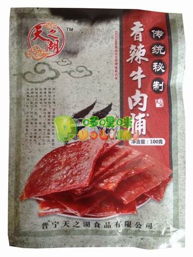 品 名:天之湖秘制牛肉脯(香辣)100克 進口食品批發(fā)